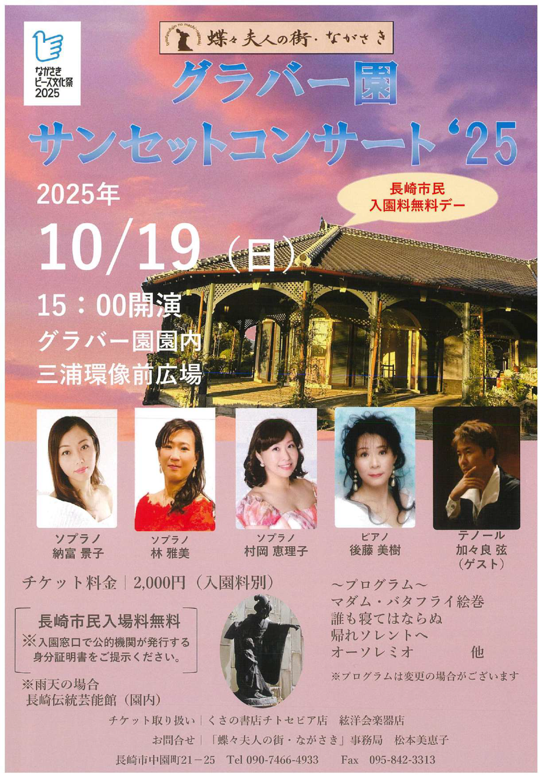 Glover Garden Event & News イベント&ニュース 10/19開催!グラバー園サンセットコンサート25 2025.10.13 イベント 重要なお知らせ □グラバー園サンセットコンサート25 開催! 当日はグラバーファミリーデー!そのほか10/19のイベント詳細はこちら 記事一覧 記事一覧 すべて 年月別一覧 2025年 1月 2月 3月 4月 5月 6月 7月 8月 9月 10月 2024年 1月 3月 4月 5月 6月 7月 8月 9月 10月 11月 12月 2023年 1月 3月 4月 5月 6月 7月 8月 9月 10月 11月 12月 2022年 1月 2月 3月 6月 7月 8月 9月 10月 11月 12月 2021年 1月 2月 4月 5月 6月 7月 8月 9月 10月 11月 12月 2020年 1月 3月 4月 5月 6月 7月 8月 9月 10月 11月 2019年 1月 2月 3月 4月 7月 8月 9月 10月 11月 12月 2018年 1月 2月 3月 4月 7月 8月 9月 10月 12月 2017年 5月 9月 10月 11月 12月 カテゴリー イベント お知らせ 重要なお知らせ × 記事一覧を閉じる