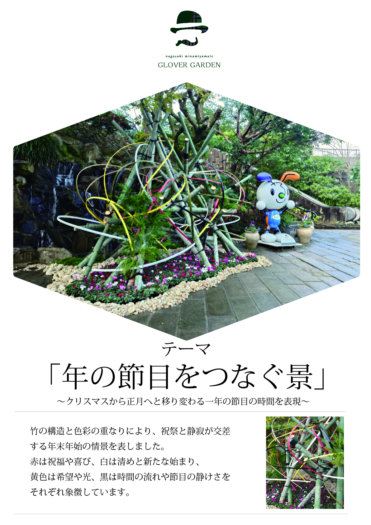 みずみずしい竹と美しい花々で作られたモニュメントが、エントランスに登場!グラバー園へご来園の皆様をお出迎えします。