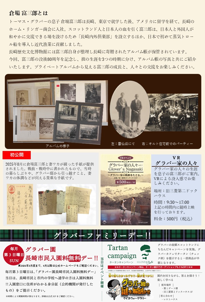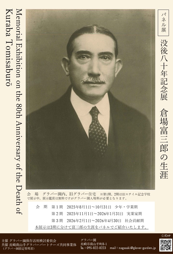 トーマス・グラバーの息子 倉場富三郎が没後80年を迎えることを記念して、2025年8月から4月末まで3期に分けてパネル展を開催。