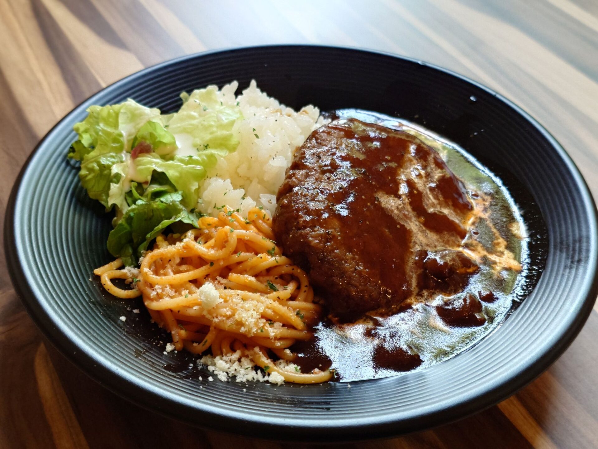 パスタ・野菜が添えられた食べ応えあるワンプレート。
