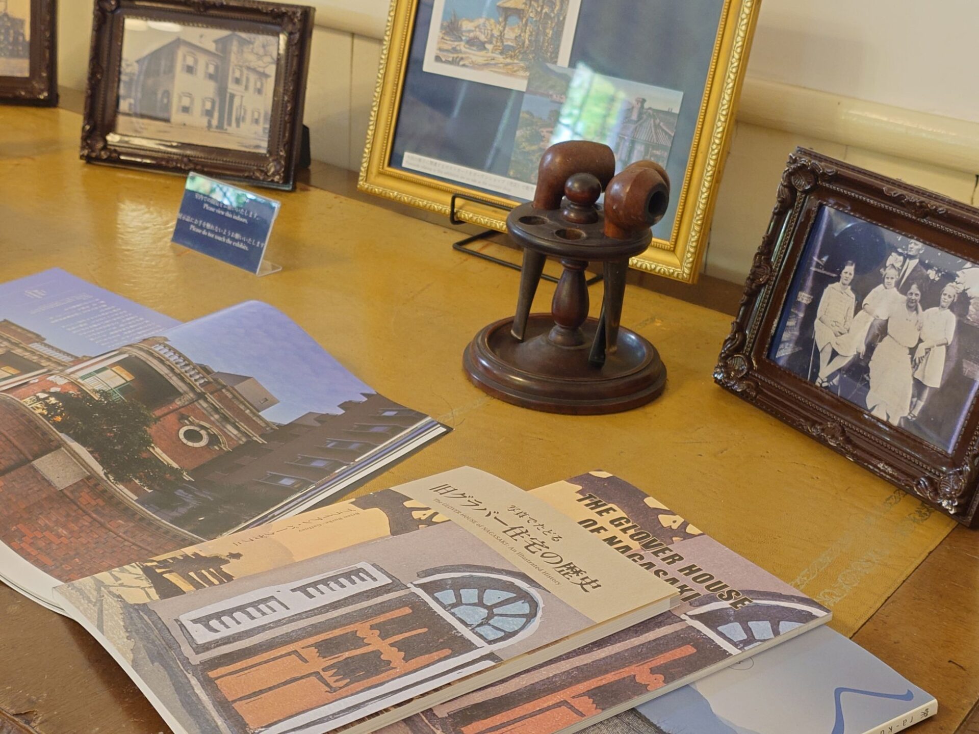 店内では、版画家・田川憲の作品をはじめ、グラバー園名誉園長が収集した「旧グラバー住宅の絵葉書」などを展示。